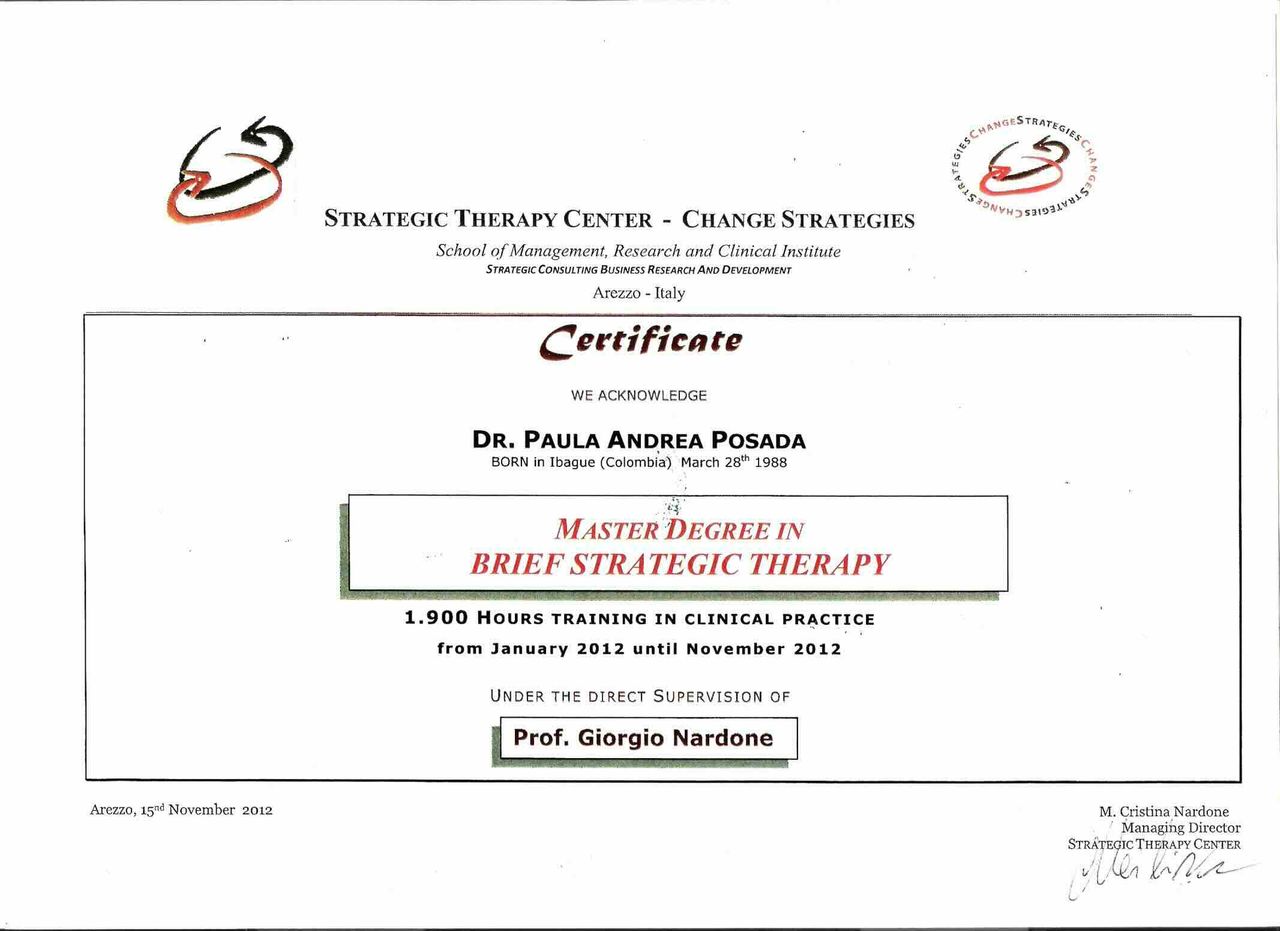 Apasionada por vivir actualizada en los temas que me interesan y me hacen crecer profesional y personalmente. Es por esto que participo en las supervisiones mensuales que realiza el profesor Nardone, para que de la mano de él, pueda supervisar los casos clínicos que acompaño. También participo en los cursos de actualización realizados por el CTS de Italia y de los propuestos por las diferentes sedes alrededor del mundo.