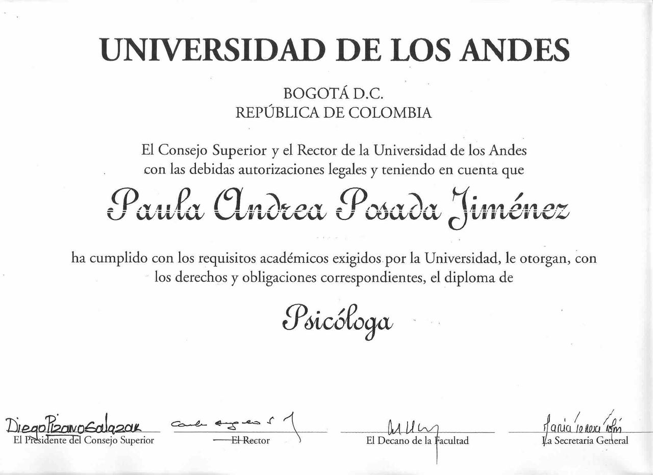 Psicóloga con opción en Atropología de la Universidad de los Andes (2010). Terapeuta Breve Estratégica formada con el maestro Giorgio Nardone en Arezzo, Italia (2012). Actualmente soy aspirante a Magíster en Psicoterapia de orientación logoterapéutica (SAPS, 2025). Con experiencia en psicología clínica, social, educativa y organizacional.